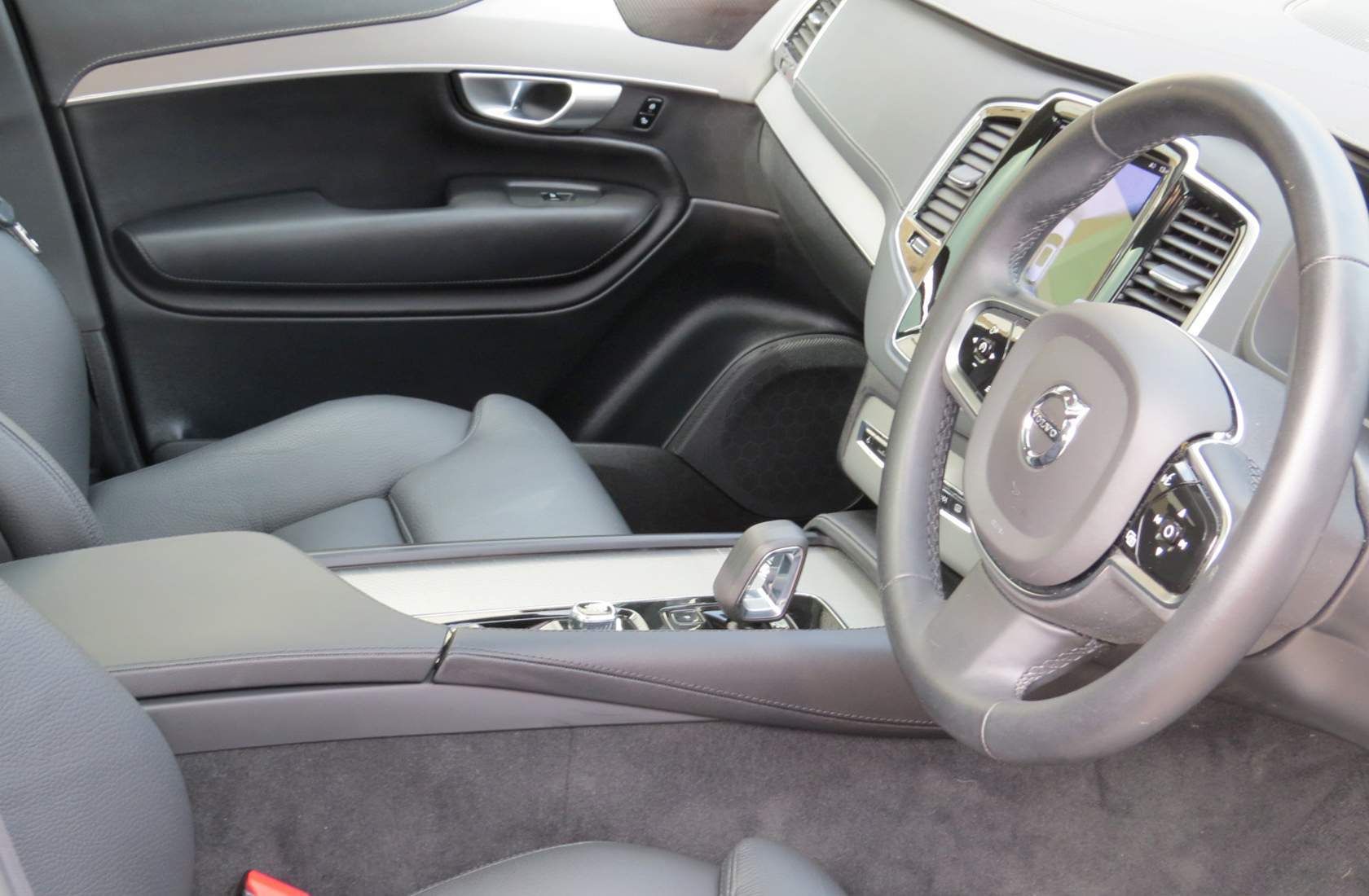 Denim blue metallic , charcoal soft nappa leather trim with metal mesh aluminum décor, exterior black package, 3rd row seating, touch screen satellite navigation, full glass panoramic moon roof, electric memory heated comfort seats-heated steering wheel-rear seats, keyless-go, intelligent drivers information system, adaptive cruise control, 4-zone climate controlled air-conditioning, wireless phone charging, 360° surround parking, cross flow traffic alert, apple car play with Harmon Kardon premium sound system, 20” 5-spoke gloss black-diamond cut alloy wheels